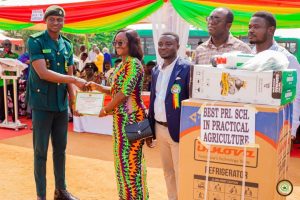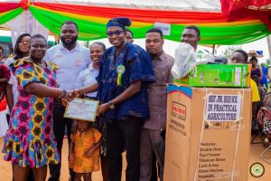 The highlight of the ceremony was the award of the Overall Best Farmer for the Afigya Kwabre South District to Mr. Peter Ofori Amanfo. His prize package included one tricycle, one knapsack sprayer, a pair of Wellington boots, two cutlasses, one 50kg bag of SOA fertilizer, two bottles of foliar fertilizer, and one box of weedicides.